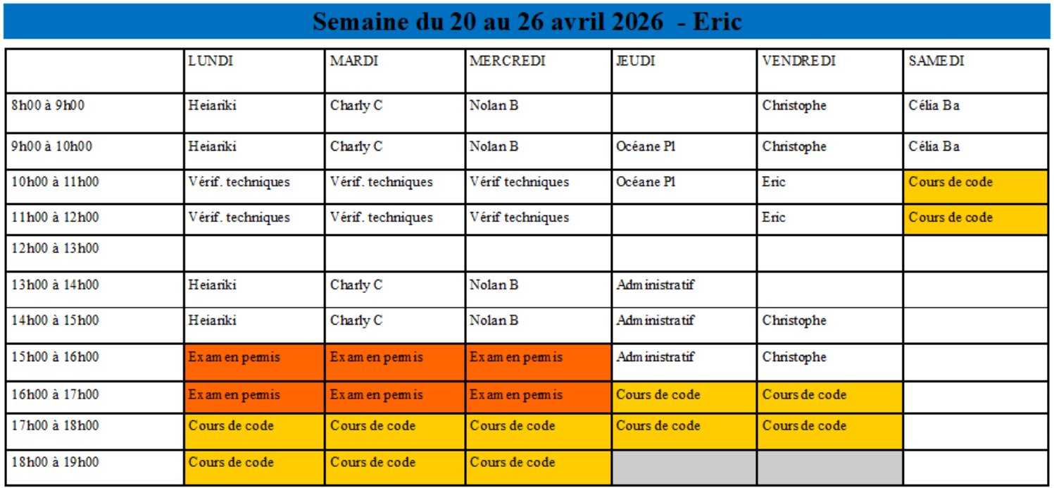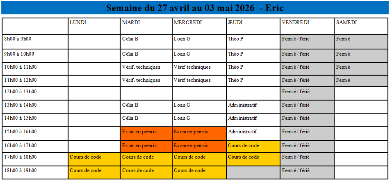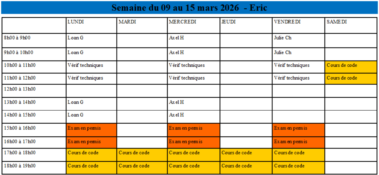 Aucun élève n’est prioritaire même si chacun a de bonnes raisons de vouloir passer avant les autres (organisation, travail, école, examens, mal au nez ou à la tête..........).Un planning prévisionnel étant établi à l’avance, un delai d’environ 5 semainessera necessaire entre la réussite à l’examen du code et la première leçon de conduite.tout élève doit être a jour des paiements.en cas de paiements non a jour, pas de leçon ou d’examen !!!!!!