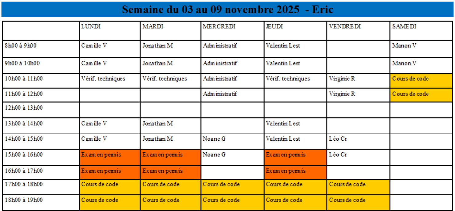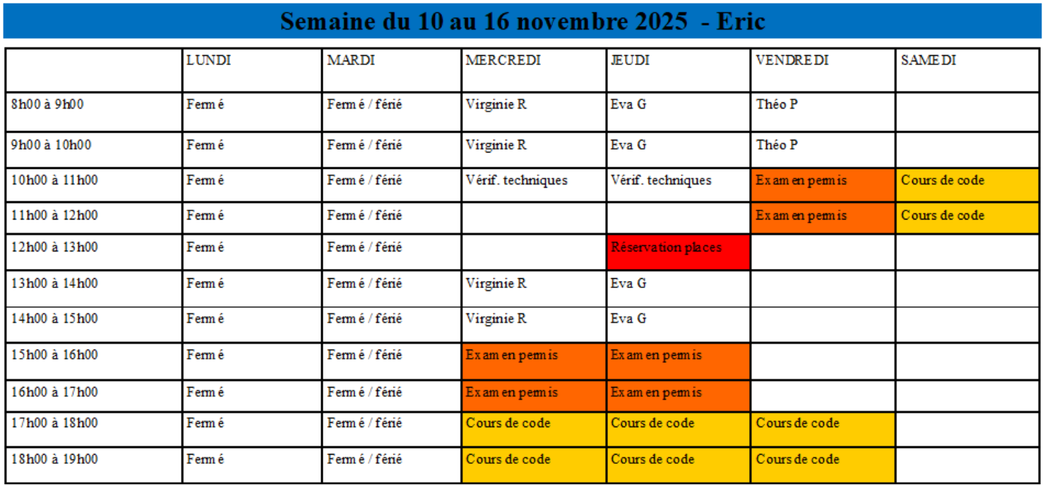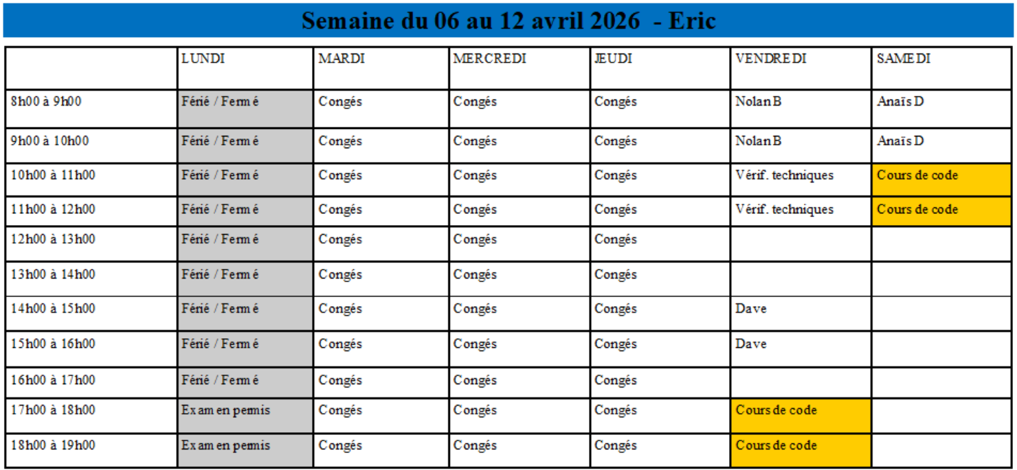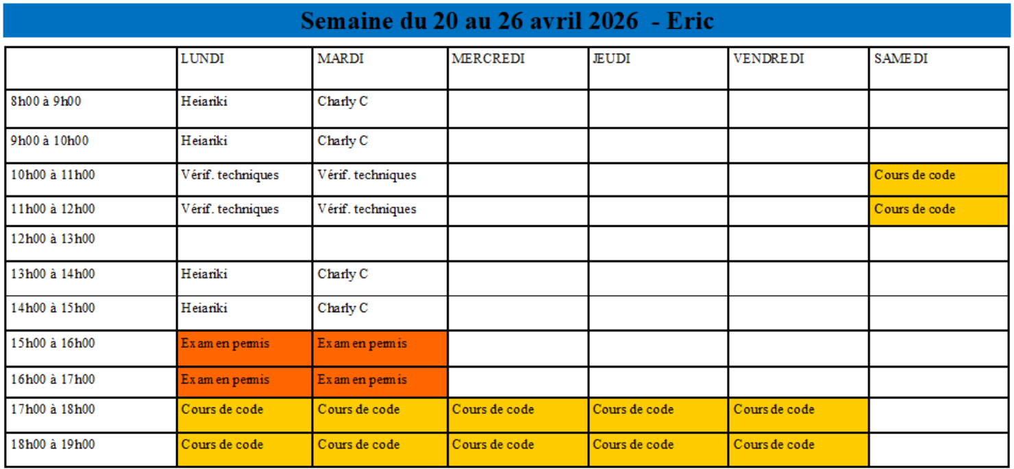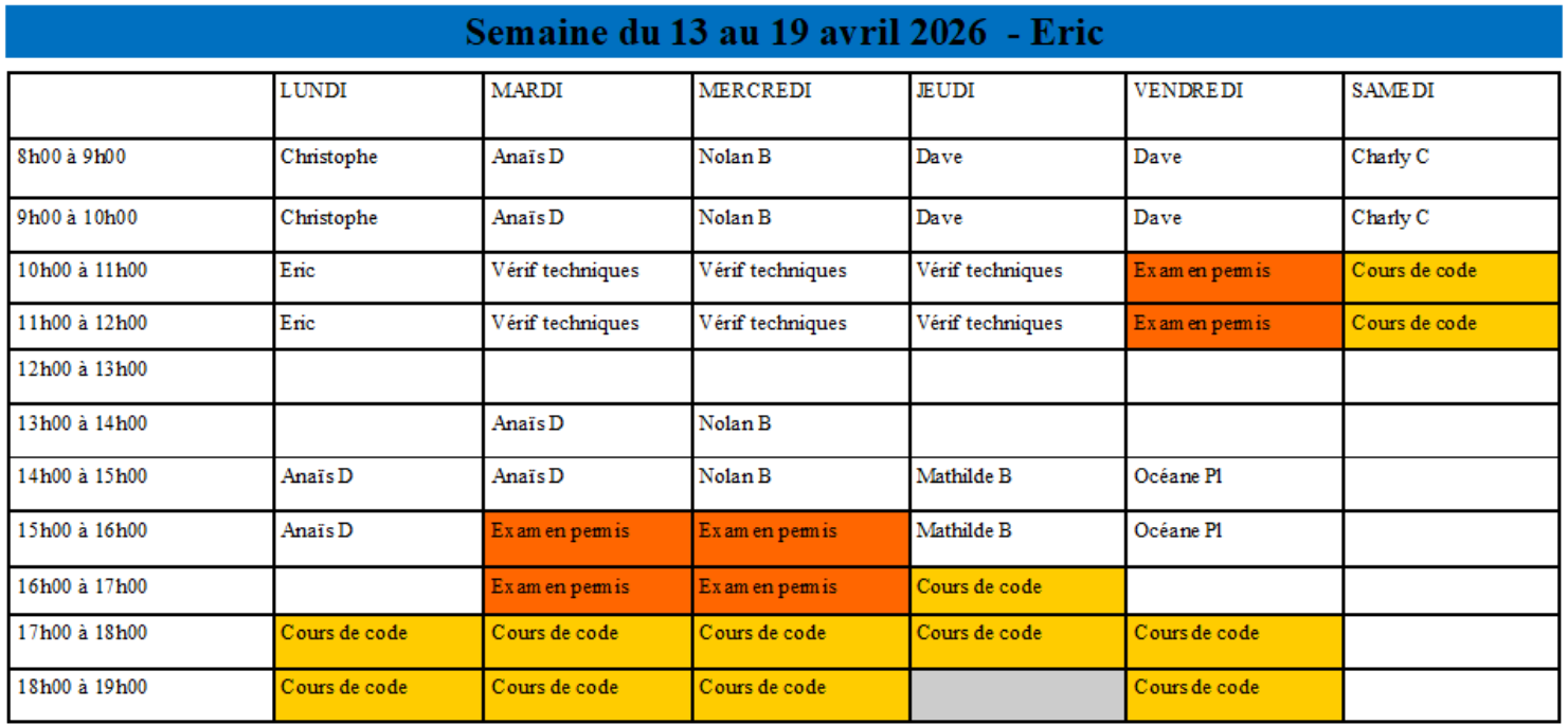 Aucun élève n’est prioritaire même si chacun a de bonnes raisons de vouloir passer avant les autres (organisation, travail, école, examens, mal au nez ou à la tête..........).Un planning prévisionnel étant établi à l’avance, un delai d’environ 5 semainessera necessaire entre la réussite à l’examen du code et la première leçon de conduite.tout élève doit être a jour des paiements.en cas de paiements non a jour, pas de leçon ou d’examen !!!!!!